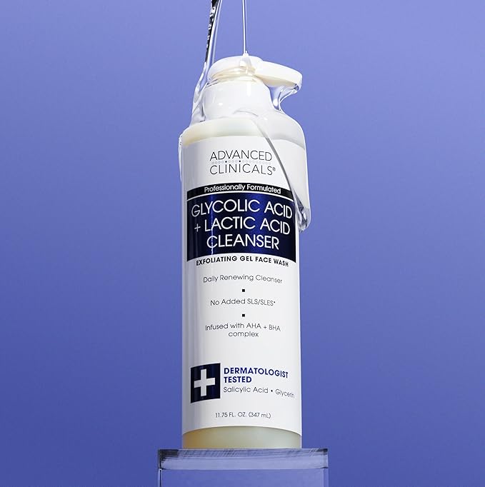 Advanced Clinicals Glycolic Acid Exfoliating Face Wash For Women & Men | Lactic Acid & Salicylic Acid Facial Cleanser | Glycerin Gel Gleanser Helps Gently Exfoliate & Cleanse Dirt & Oil, 11.75 Fl Oz